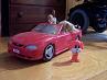 So like I said, I forgot to take a picture of the car, but then I remembered that the Barbie car that we put under the Christmas tree every year is a red Ford Mustang, so with the help of Barbie, Ken and Steve I kind of recreated the moment.