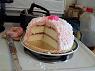 Then, because it is my birthday and I am taking a sabbatical from all housework related duties, Kevin had to clear all kinds of crap out of the kitchen so he could cut my full-sized pink birthday cake.