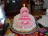 Then, because it is my birthday and I am taking a sabbatical from all housework related duties, Kevin had to clear all kinds of crap out of the kitchen so he could cut my full-sized pink birthday cake.